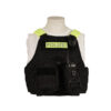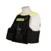 Operational vest for ballistic protection plates with modular webbing in the front, back and side areas of the vest.